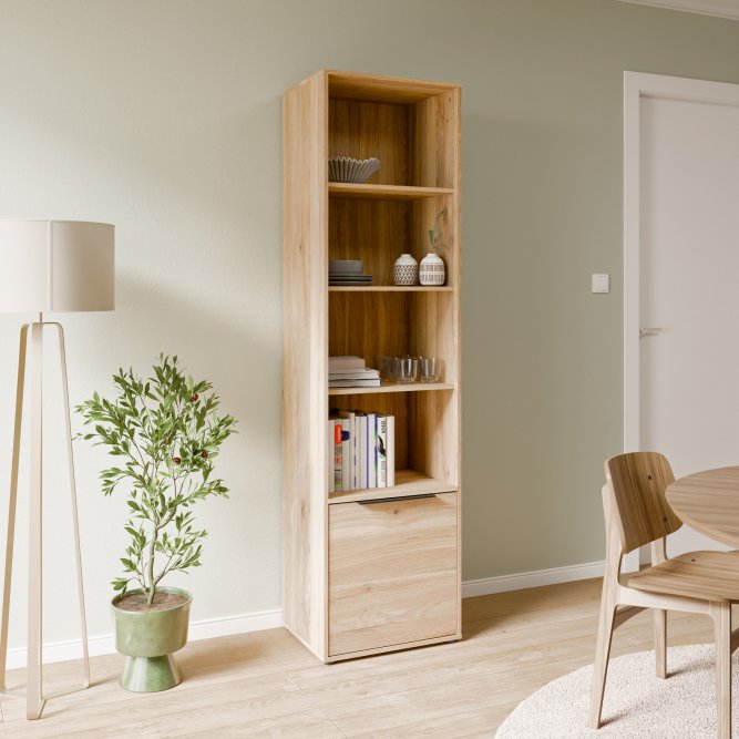 Pojemny regał z kolekcji ORKNEY świetnie wyeksponuje Twoje ulubione książki, pamiątki oraz dekoracje. Pomogą w tym 4 półki wnękowe. Dodatkowe miejsce do przechowywania zapewni też dolna zamykana szafka. Regał doskonale wygląda zestawiony z pozostałymi elementami z kolekcji, tworząc wymarzoną aranżację salonu w stylu klasycznym lub modern classic.