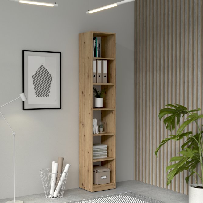 Regał CANDLEKEEP będzie świetnym uzupełnieniem aranżacji domowego biura. Dzięki 7 regulowanym półkom pozwoli na wyeksponowanie ulubionych dzieł literackich, zdjęć i dekoracji. Możesz zamontować w nim dodatkowe drzwiczki, które znajdziesz w ofercie. Regał wraz z innymi meblami z kolekcji CANDLEKEEP polecany jest zwłaszcza do pomieszczeń urządzonych w stylu skandynawskim.