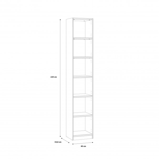 Wymiary: szerokość 40 cm, wysokość 220 cm i głębokość 34,8 cm