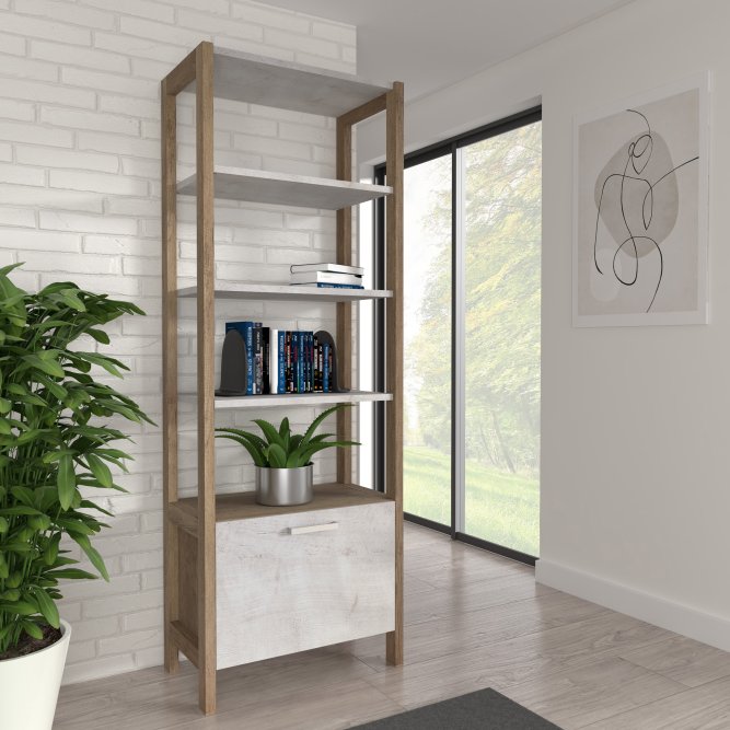 Regał ażurowy z szafką 70 cm DURO Pinia Biała/Dąb Antyczny