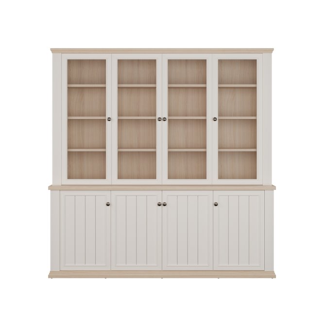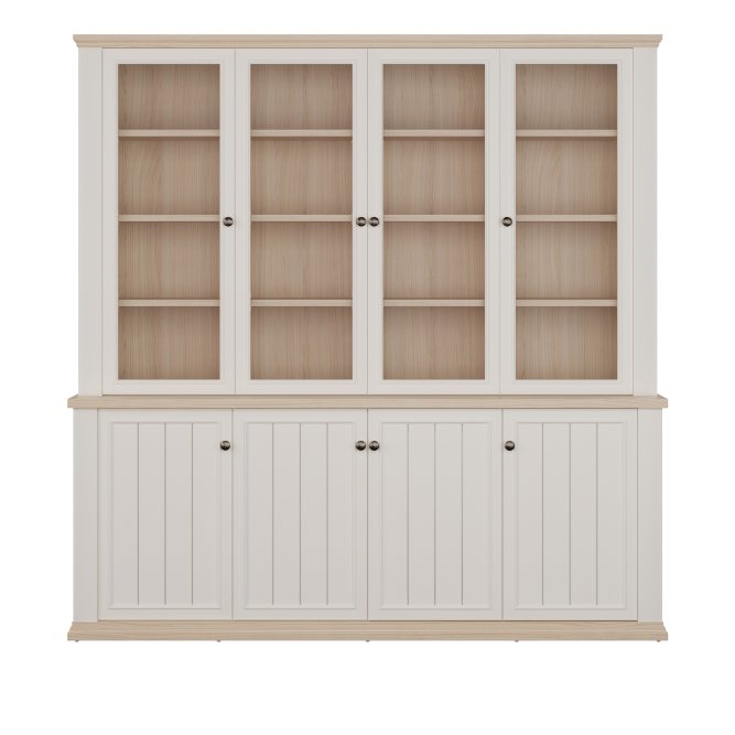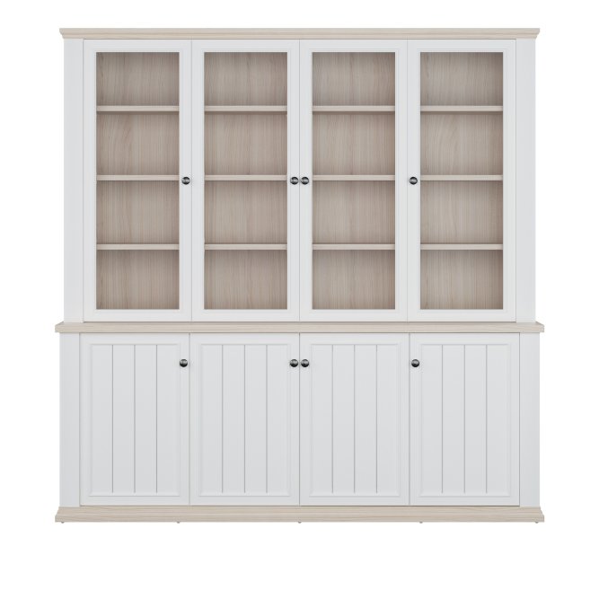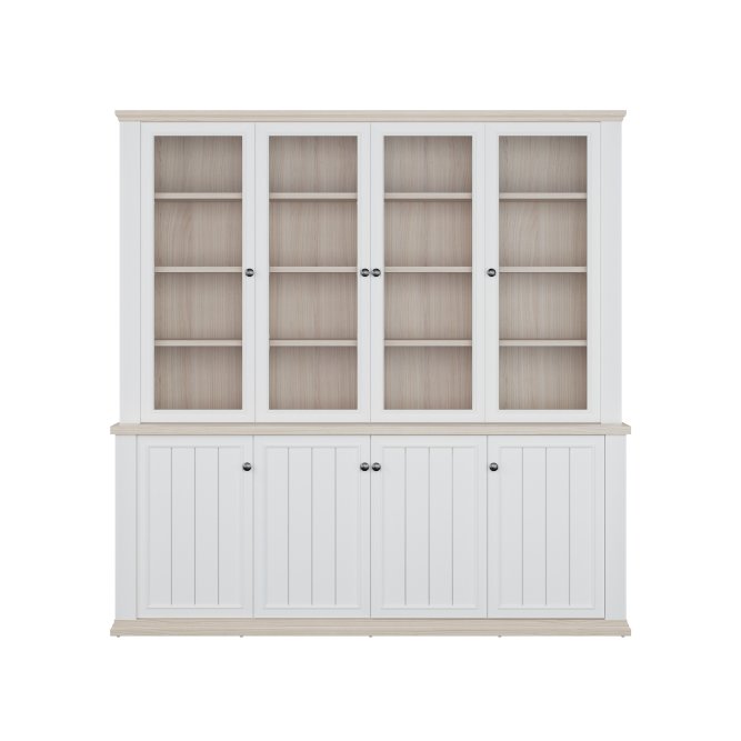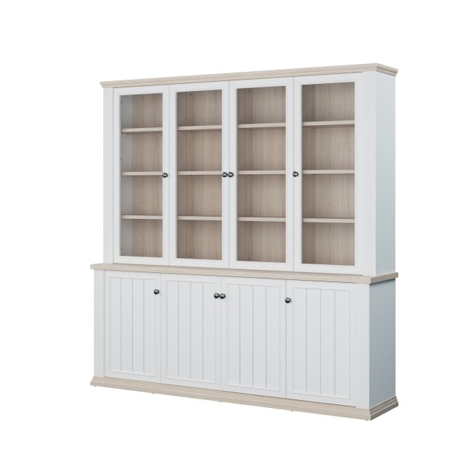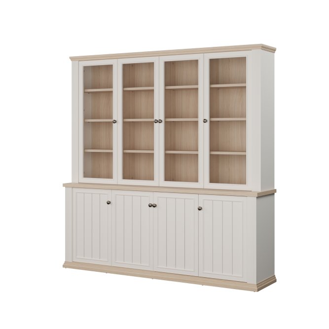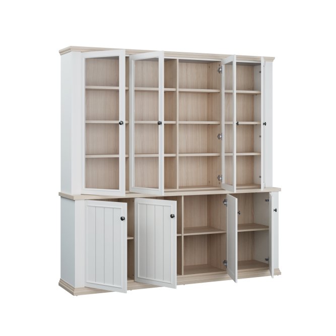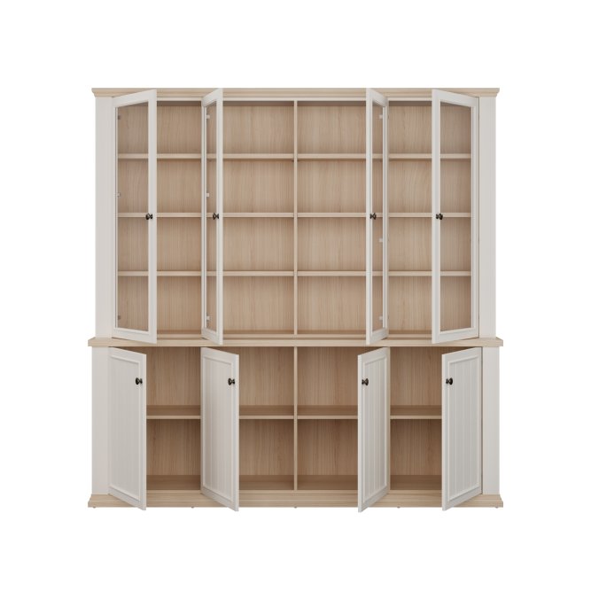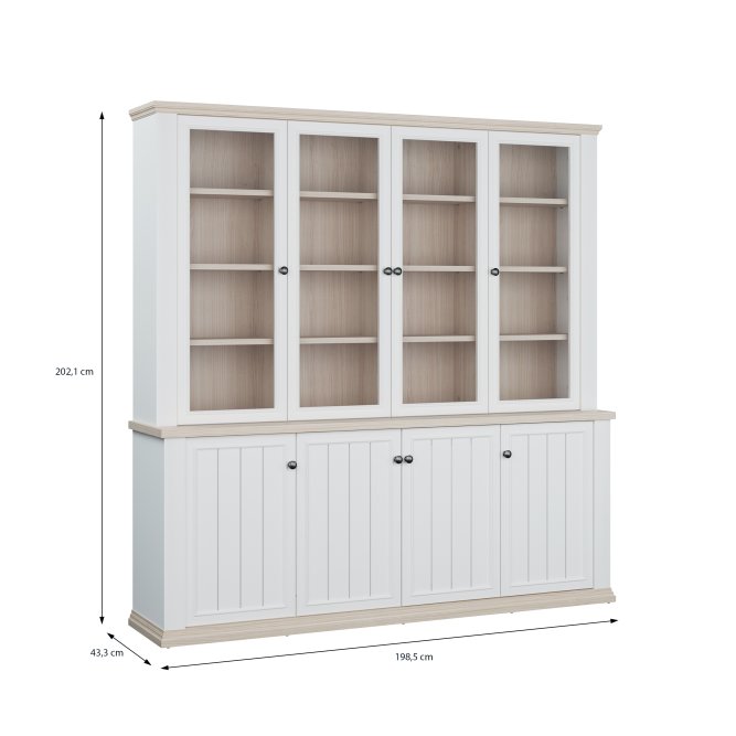 8-drzwiowy regał z kolekcji PONTYPOOL o szerokości niemal 200 cm świetnie wyeksponuje Twoje ulubione książki, pamiątki oraz dekoracje. Mebel wyposażony jest w aż 16 półek, co gwarantuje mnóstwo miejsca do przechowywania, a transparentne, bezpieczne szkło hartowane zastosowane w 4 drzwiach regału umożliwi wyeksponowanie wybranych przedmiotów. 8-drzwiowy regał PONTYPOOL doskonale wygląda zestawiona z pozostałymi elementami z kolekcji, tworząc wymarzoną aranżację salonu.