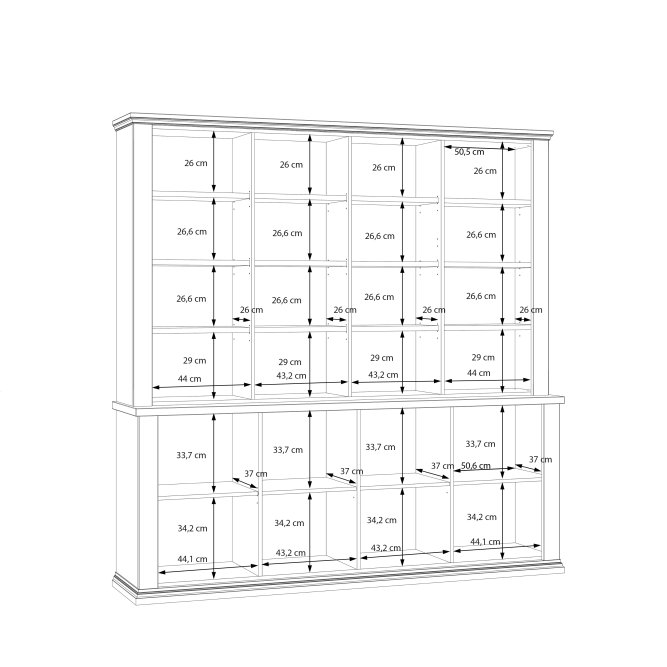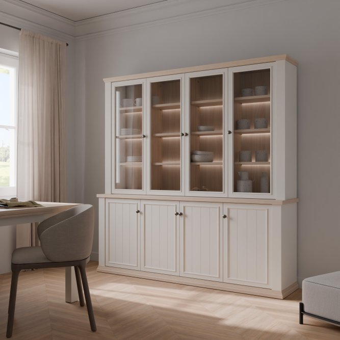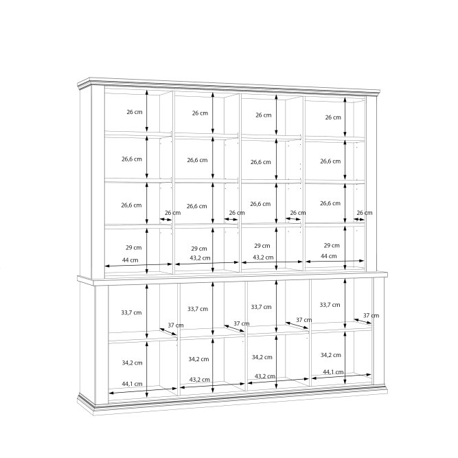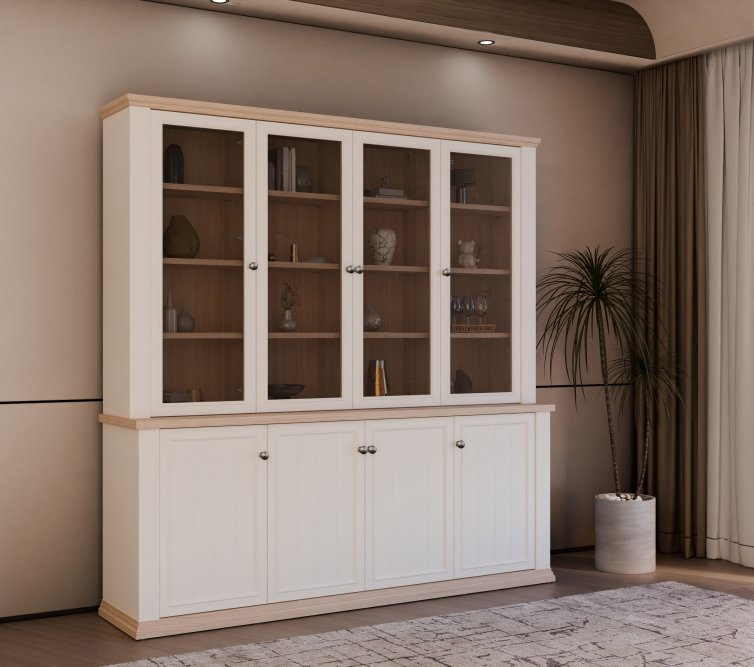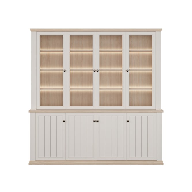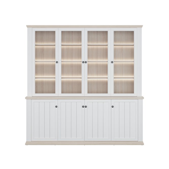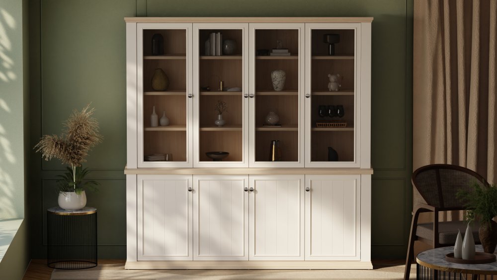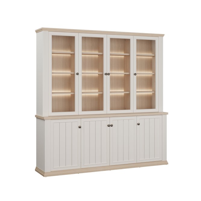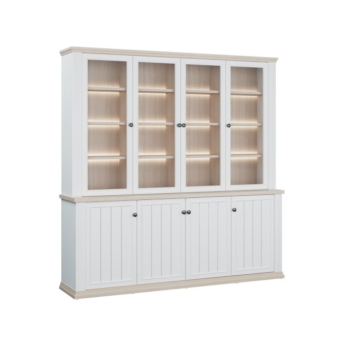 8-drzwiowy regał z kolekcji PONTYPOOL o szerokości niemal 200 cm świetnie wyeksponuje Twoje ulubione książki, pamiątki oraz dekoracje. Mebel wyposażony jest w aż 16 półek, co gwarantuje mnóstwo miejsca do przechowywania, a transparentne, bezpieczne szkło hartowane zastosowane w 4 drzwiach regału umożliwi wyeksponowanie wybranych przedmiotów. 8-drzwiowy regał PONTYPOOL doskonale wygląda zestawiona z pozostałymi elementami z kolekcji, tworząc wymarzoną aranżację salonu.