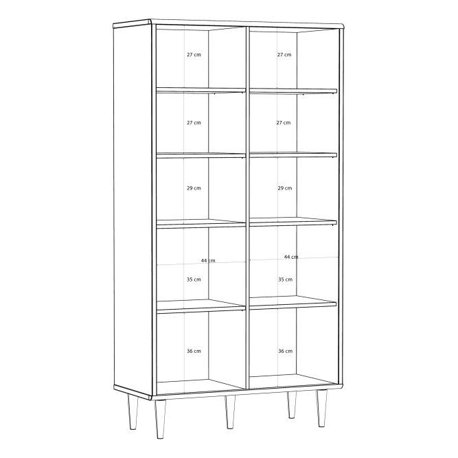 Wymiary regału: szer. 94,6 cm × wys. 182,6 cm × gł. 43 cm