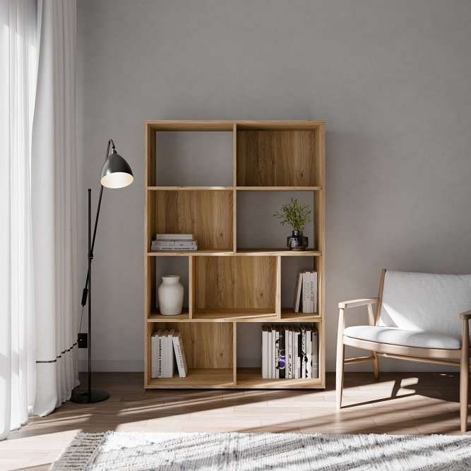 Pojemny regał z kolekcji ORKNEY świetnie wyeksponuje Twoje ulubione książki, pamiątki oraz dekoracje. Pomoże w tym 9 otwartych wnęk. Regał doskonale wygląda zestawiony z pozostałymi elementami z kolekcji, tworząc wymarzoną aranżację salonu w stylu klasycznym lub modern classic.
