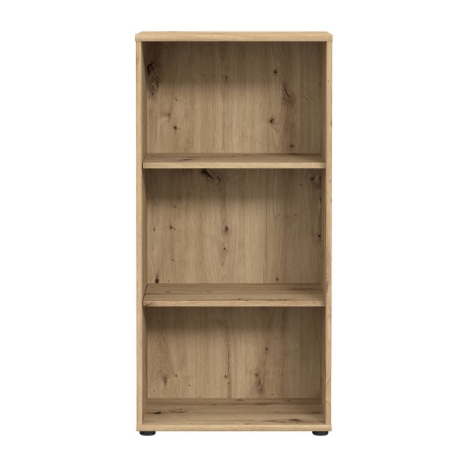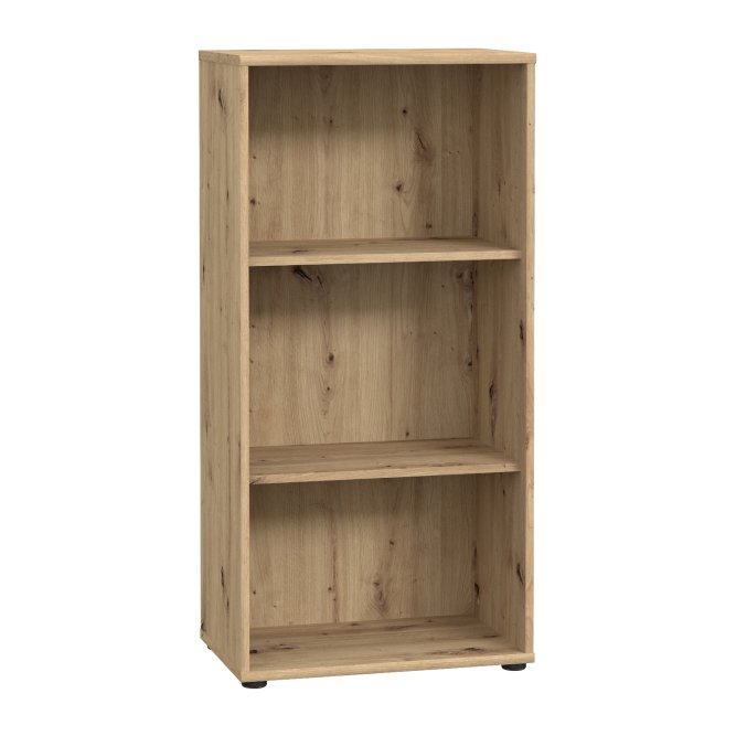 Regał o szerokości 54 cm w ciepłym, przytulnym dekorze imitującym naturalne usłojenie drewna świetnie sprawdzi się w domowym gabinecie, salonie czy pokoju młodzieżowym. Posiada trzy funkcjonalne półki wnękowe, które pomieszczą książki, dokumenty i dekoracje, zachowując porządek w pomieszczeniu. Naturalny drewniany odcień łatwo dopasuje się do różnych aranżacji, wprowadzając stylowy akcent. Prosta forma i schludne wykończenie gwarantują ponadczasowy wygląd, który nie przytłacza wnętrza. Regał będzie idealnym rozwiązaniem dla osób, które szukają praktycznego mebla o klasycznym, uniwersalnym charakterze.