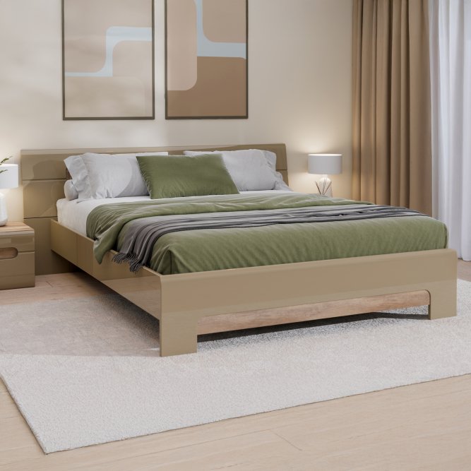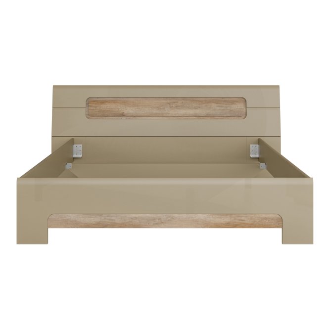 Łóżko z kolekcji TIZIANO wykonane jest w połączeniu Dębu Antycznego i Beżowego Połysku. Mebel wyróżnia się ozdobną ryflowaną listwą na wezgłowiu. Funkcjonalne łóżko idealnie sprawdzi się w nowoczesnej i przytulnej sypialni, wymaga wkładu na ramie.