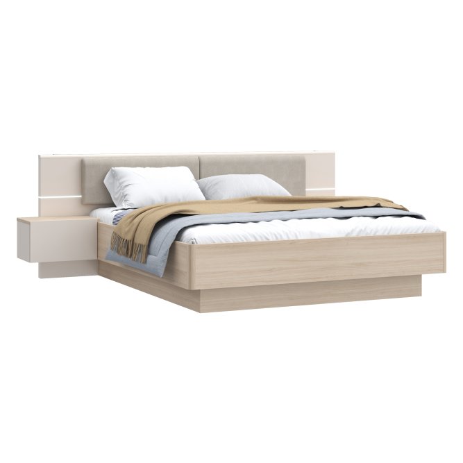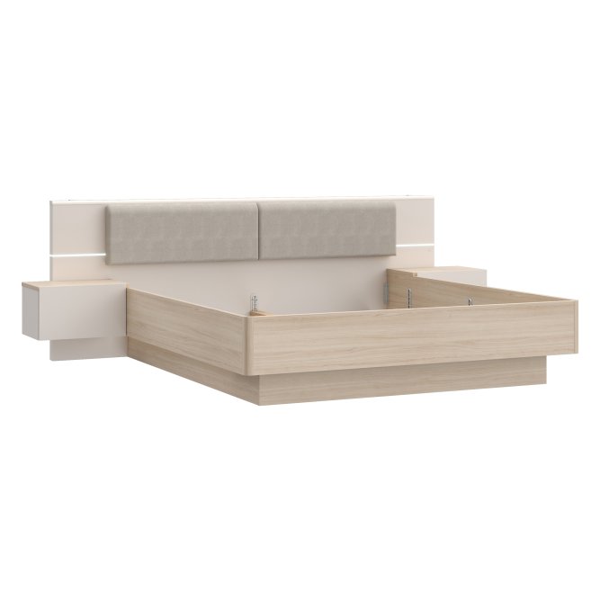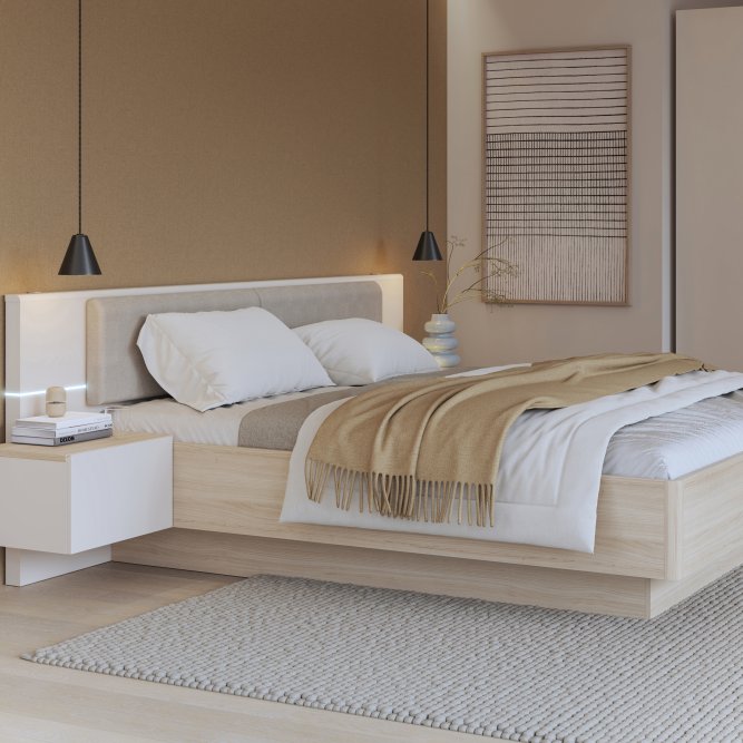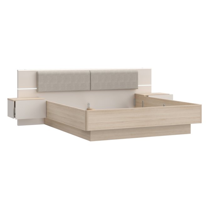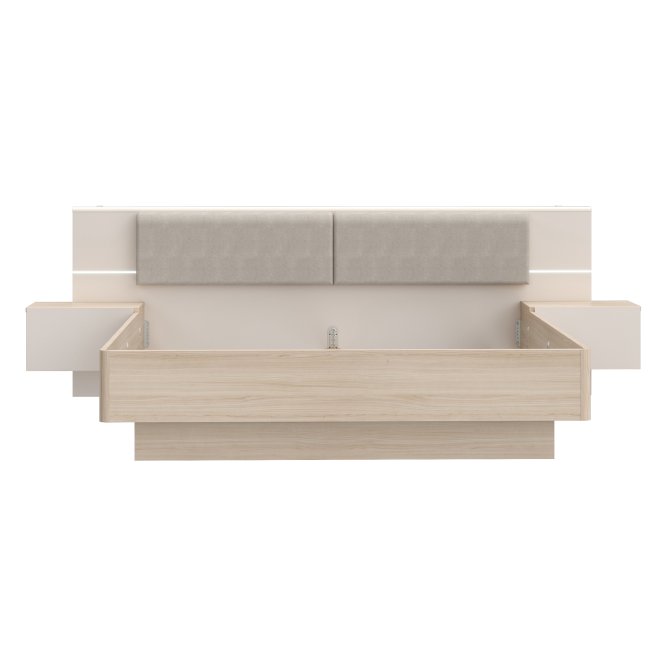 Stelaż łóżka ze zintegrowanymi szafkami dopełnia kolekcję PANOPTIK. Subtelna, otulająca linia zachwyci tych, którzy ponad wszystko cenią relaks i harmonię. Dwuosobowe łóżko możesz ustawić w bardzo dużej sypialni, w której nie może zabraknąć królewskiego łóża. Zintegrowane szafki ułatwią przechowywanie kosmetyków lub leków. Dzięki dołączonemu oświetleniu nie musisz szukać miejsca na blatach szafki na lampkę nocną. Tapicerowany zagłówek możesz traktować jako wygodne podparcie podczas wieczornej lektury, ale też jako ochrona ściany przed zabrudzeniem. Połącz łóżko 180 PANOPTIK z innymi meblami z kolekcji, tworząc spójną aranżację sypialni.