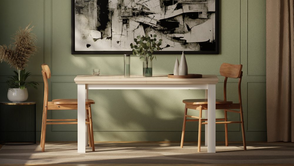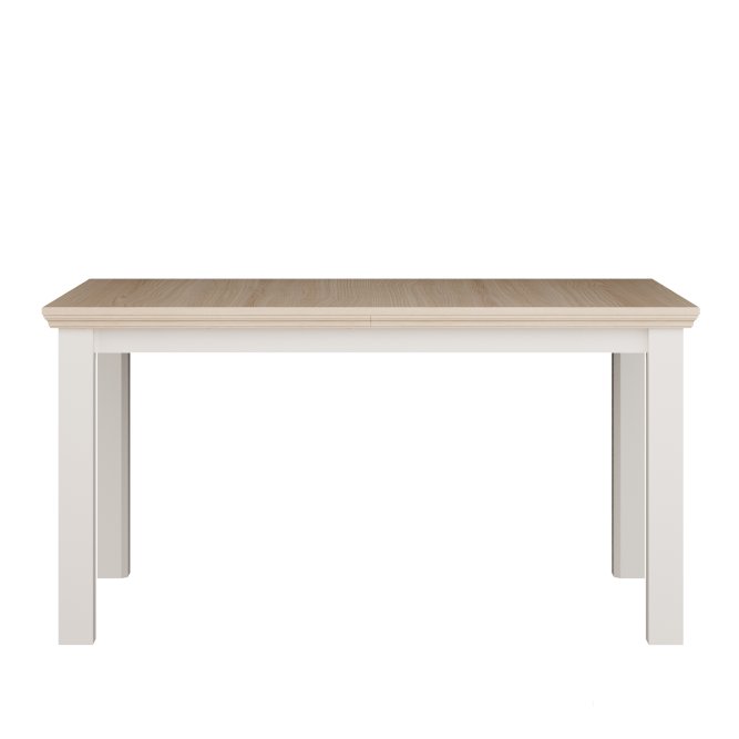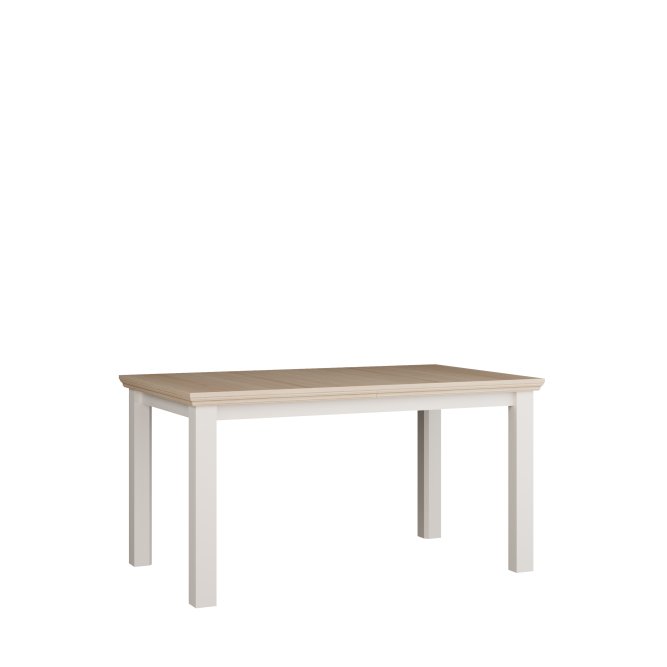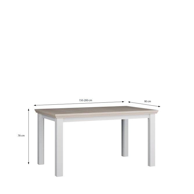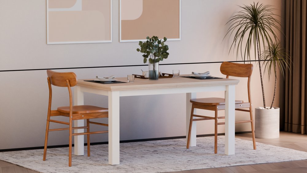 Stół wykonany w efektownym połączeniu dekorów: Biały / Dąb Riva