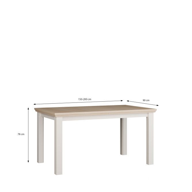 Stół rozkładany o podstawowych wymiarach blatu 150x90 cm z kolekcji PONTYPOOL to sposób na urządzenie salonu lub jadalni, w której zjesz posiłek i spędzisz czas z bliskimi. Pod blatem znajdziesz wewnętrzną wkładkę, która pozwoli Ci dostosować wielkość mebla do Twoich potrzeb. Stół doskonale wygląda zestawiony z pozostałymi elementami z kolekcji, tworząc wymarzoną aranżację salonu czy jadalni.