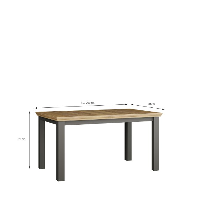 Stół rozkładany o podstawowych wymiarach blatu 150x90 cm z kolekcji PONTYPOOL to sposób na urządzenie salonu lub jadalni, w której zjesz posiłek i spędzisz czas z bliskimi. Pod blatem znajdziesz wewnętrzną wkładkę, która pozwoli Ci dostosować wielkość mebla do Twoich potrzeb. Stół doskonale wygląda zestawiony z pozostałymi elementami z kolekcji, tworząc wymarzoną aranżację salonu czy jadalni.
