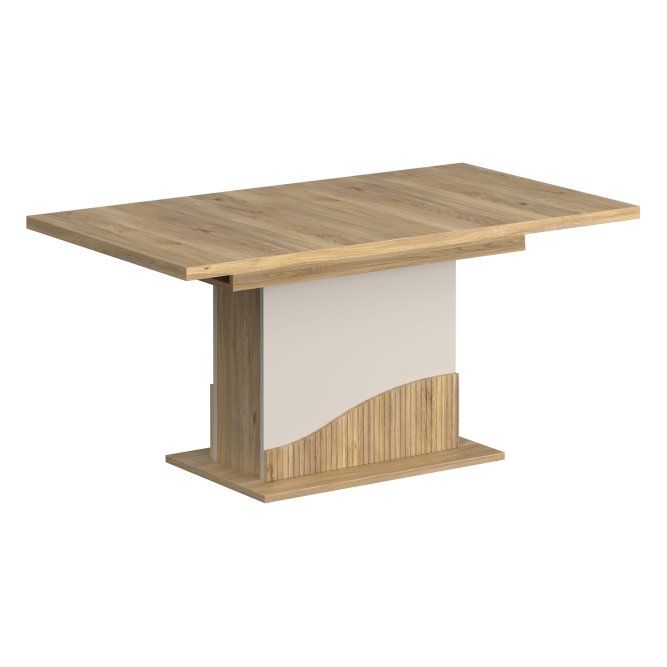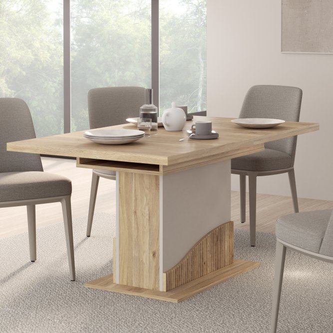 Stół rozkładany z kolekcji POEM dopełni jadalnię urządzoną w stylu n/a. Przy stole możesz spożywać posiłki, ale też spędzić czas z rodziną i znajomymi na rozmowach, grając w gry planszowe lub karciane. Pod blatem znajdziesz wewnętrzną wkładkę, która pozwoli Ci dostosować wielkość mebla do Twoich potrzeb. Stół rozkładany POEM możesz ustawić w towarzystwie mebli z wielu kolekcji, które znajdziesz w FORTE.