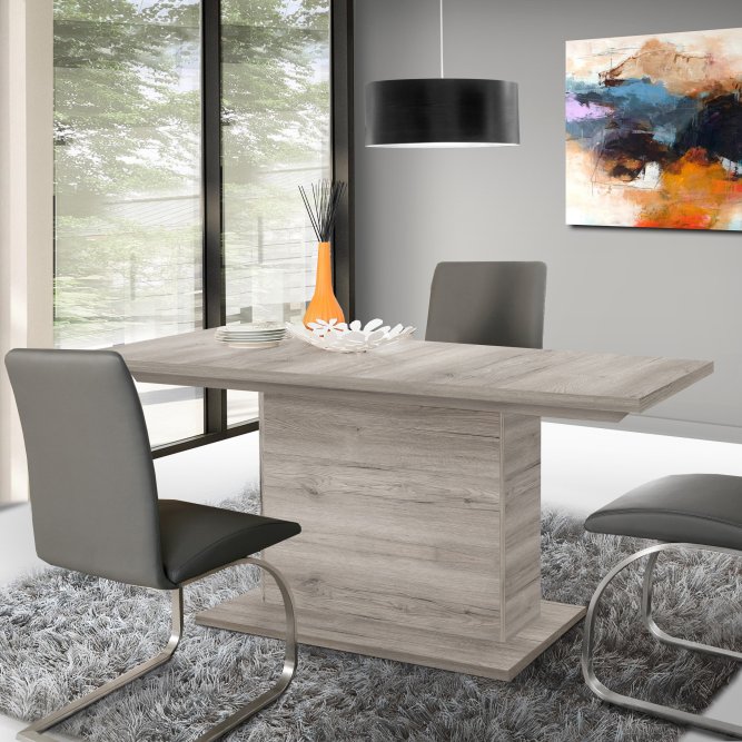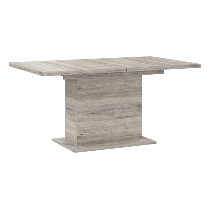 Jasny rozkładany stół w nowoczesnym stylu będzie świetnie pasował do każdej jadalni i kuchni. Subtelny dekor Dąb Piaskowy doda wnętrzu elegancji oraz pozwoli na wkomponowanie stołu do każdego rodzaju aranżacji. Solidny, dużych rozmiarów blat idealnie sprawdzi się podczas rodzinnych spotkań, gdzie każdy będzie czuł się swobodnie.