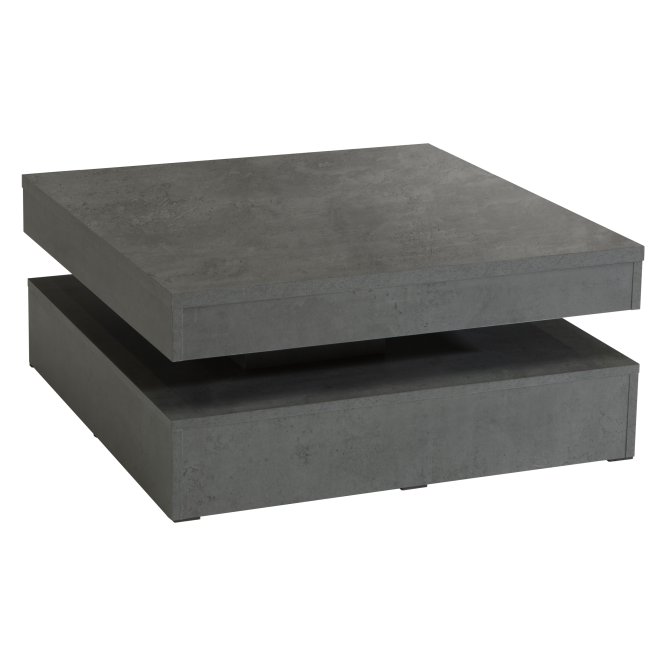 Innowacyjny stolik okolicznościowy, który posiada specjalny mechanizm umożliwiający obracanie blatu stolika: górna część przekręca się, odsłaniając dolną półkę. To bardzo wygodne rozwiązanie, gdy nie chcesz wstawać, by mieć filiżankę kawy pod ręką. Dobrana kolorystyka i prosta forma stolika sprawi, że będzie doskonałym uzupełnieniem nowoczesnej aranżacji.