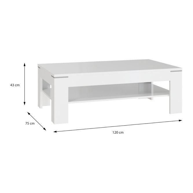 Biały stolik okolicznościowy będzie świetnym uzupełnieniem nowoczesnej aranżacji salonu. Dodatkowa dolna półka stolika jest idealnym miejscem do przechowywania gazet i czasopism, które zawsze warto mieć pod ręką podczas popołudniowego odpoczynku. Mebel ten można łączyć z innymi artykułami z tej kolekcji.