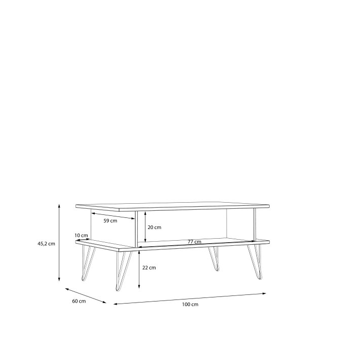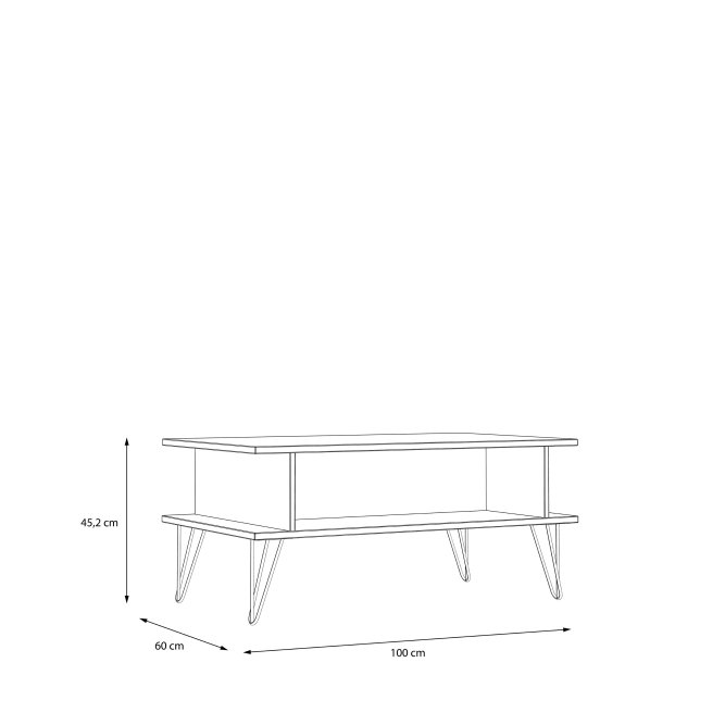 Prostokątny stolik o wymiarach szerokości 100 cm, długości 60 cm i wysokości 45,2 cm