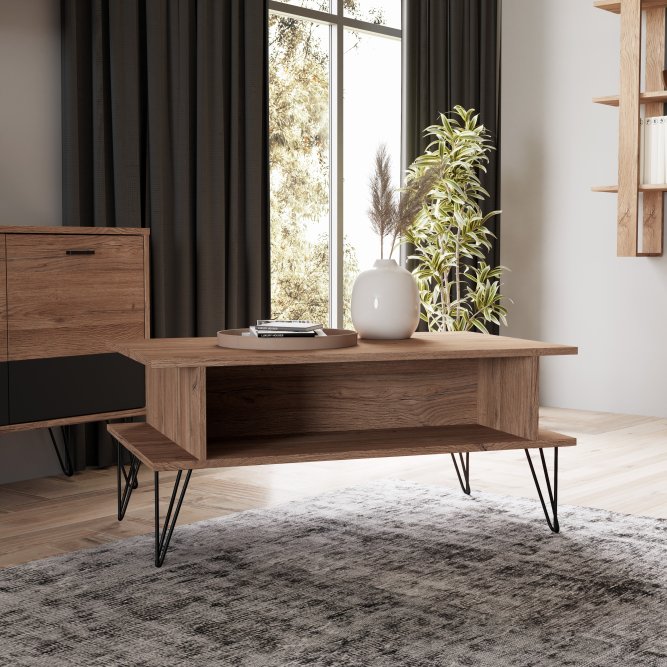 Stolik okolicznościowy, zwany też stolikiem kawowym NEYLE to miejsce, przy którym możesz się rozsiąść z filiżanką kawy, książką, oddając się indywidualnemu lenistwu lub spotkaniom z bliskimi. Ukryte pod blatem przestrzenie są idealnym miejscem do przechowywania kolorowych magazynów, pilota lub chusteczek. Prosta budowa stolika osadzona jest na wysokich, metalowych nóżkach. Stolik okolicznościowy NEYLE możesz ustawić w pobliżu fotela lub narożnika, solo lub w połączeniu z innymi meblami z kolekcji.