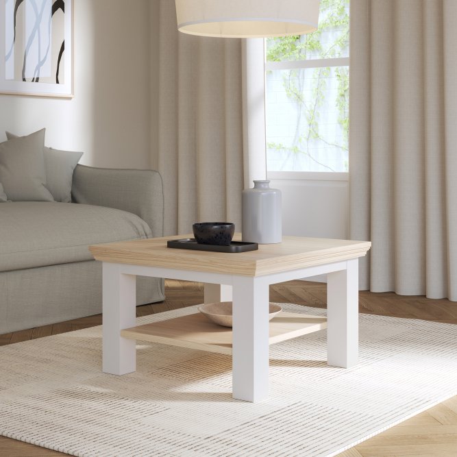 Stolik wykonany w efektownym połączeniu dekorów: Biały / Dąb Riva