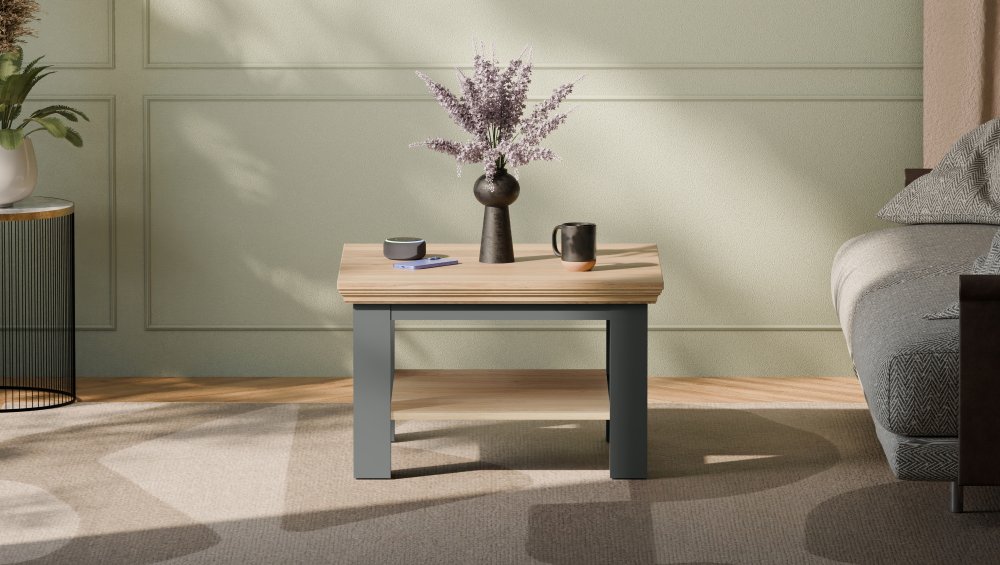 Stolik wykonany w efektownym połączeniu dekorów: Dąb Mauvella / Uni Wolfram Szary