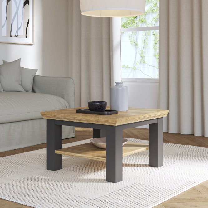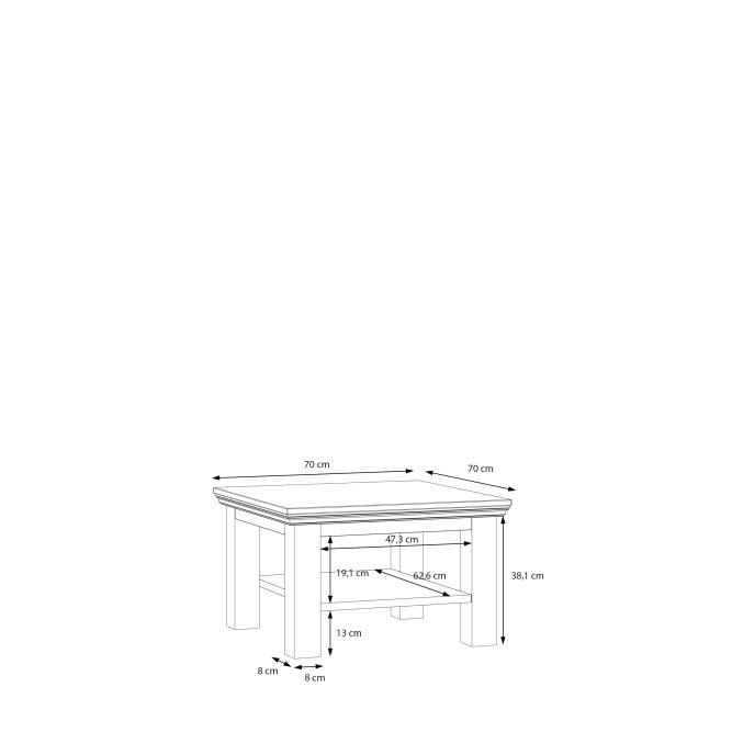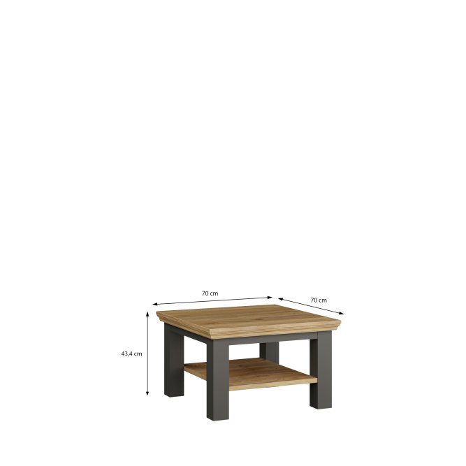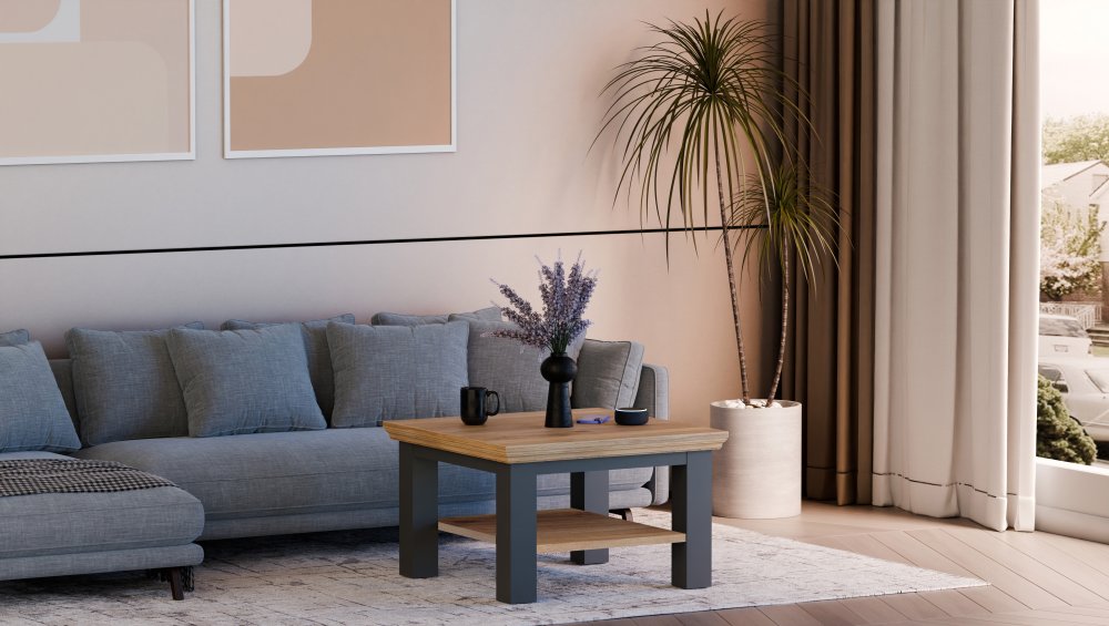 Stolik z kolekcji PONTYPOOL będzie doskonałym uzupełnieniem każdego salonu. Na kwadratowym blacie nie zabraknie miejsca na gorący napój, ciastko, słone przekąski i dekoracje, a dzięki znajdującej się pod nim półce zyskach dodatkowe miejsce na pilot do telewizora, książki, laptop lub inne rzeczy, których potrzebujesz w pobliżu podczas relaksu na sofie. Stolik doskonale wygląda zestawiona z pozostałymi elementami z kolekcji, tworząc wymarzoną aranżację salonu.