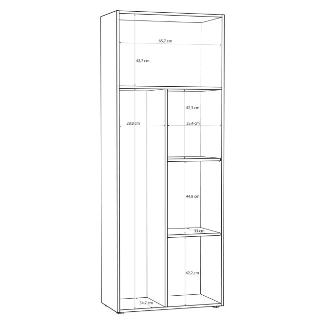 - Funkcjonalny mebel o wymiarach: szerokość 68.7 cm x wysokość 181.1 cm x głębokość 36.5 cm