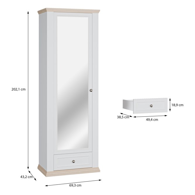 Szafa ubraniowa L/P z kolekcji PONTYPOOL w stylu PROVENSAL będzie pięknie prezentować się w takich pomieszczeniach jak Małe meble. 1-drzwiowa Szafa ubraniowa L/P zapewnia odpowiednio dużo miejsca do przechowywania.