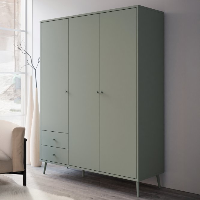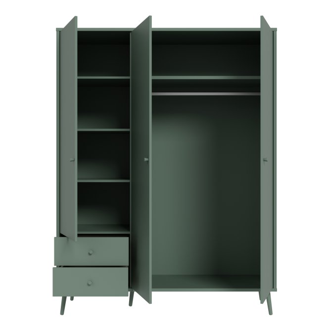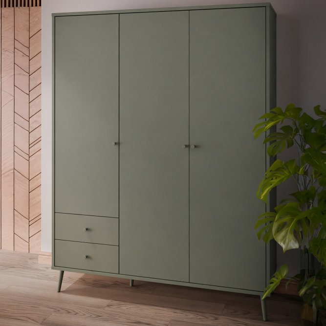 Kilka ważnych cech wyróżnia szafę HARLLSON spośród wielu innych mebli. Po pierwsze: sposób montażu. Składanie mebli jeszcze nigdy nie było tak szybkie i proste! Montaż może trwać nawet do 10 razy krócej niż w przypadku tradycyjnej metody składania, a dodatkowo nie wymaga używania prawie żadnych narzędzi, bo większość elementów łączy się ze sobą na “click”. Umożliwia to Easy Klix, innowacyjny system oparty na technologii Threespine ID®, który pozwala również na wielokrotny demontaż mebla i jego ponowne złożenie. W razie przeprowadzki nie musisz się martwić, że po rozłożeniu szafa się zniszczy. Przekonaj się jak prosty i przyjemny może być teraz montaż i demontaż mebla! Druga ważna cecha szafy, a także całej kolekcji HARLLSON Easy Klix by FORTE, to design - współczesny, ale jednocześnie przywołujący to, co najlepsze w stylu minionych epok. Subtelne w formie i kolorystyce meble łączą w sobie piękno i funkcjonalność. Wszystkie modele osadzono na drewnianych, wysokich, lekko skośnych nóżkach, dzięki temu nawet 3-drzwiowa szafa jest wizualnie lekka i nie przytłoczy pomieszczenia. Delikatne drewniane uchwyty w formie gałek podkreślają styl kolekcji i są idealnie dopasowane do poszczególnych opcji kolorystycznych. Meble będą wspaniałą bazą do aranżacji wygodnego pokoju dziennego oraz sypialni w duchu skandynawskim, scandi boho czy retro. Szafa HARLLSON, w efektownym dekorze szałwiowym z powodzeniem sprawdzi się w Twojej sypialni. Posiada dobrze zorganizowane wnętrze, w którym łatwo utrzymać porządek: 2 szuflady na drobne ubrania lub bieliznę, drążek ubraniowy oraz 4 półki. Dzięki systemowi cichego domyku, drzwiczki zamykają oraz otwierają się delikatnie i bezgłośnie.