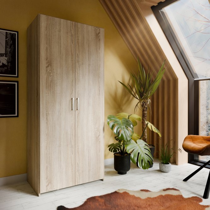 2-drzwiowa szafa o szerokości 80 cm to mebel, który sprawdzi się w pomieszczeniach o mniejszym metrażu. Dzięki uniwersalnemu kolorowi oraz minimalistycznemu designowi, będzie świetnie wyglądać w wielu stylach aranżacyjnych.