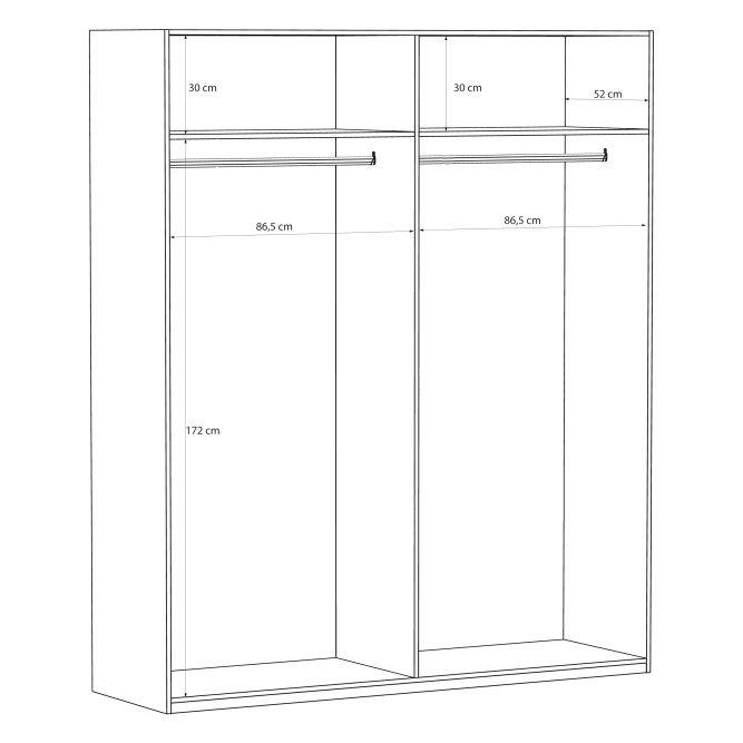 - Szafa ma wymiary 177,5 cm szerokości, 210,5 cm wysokości oraz 54,2 cm głębokości