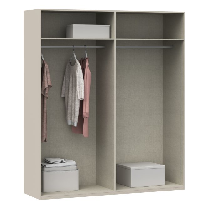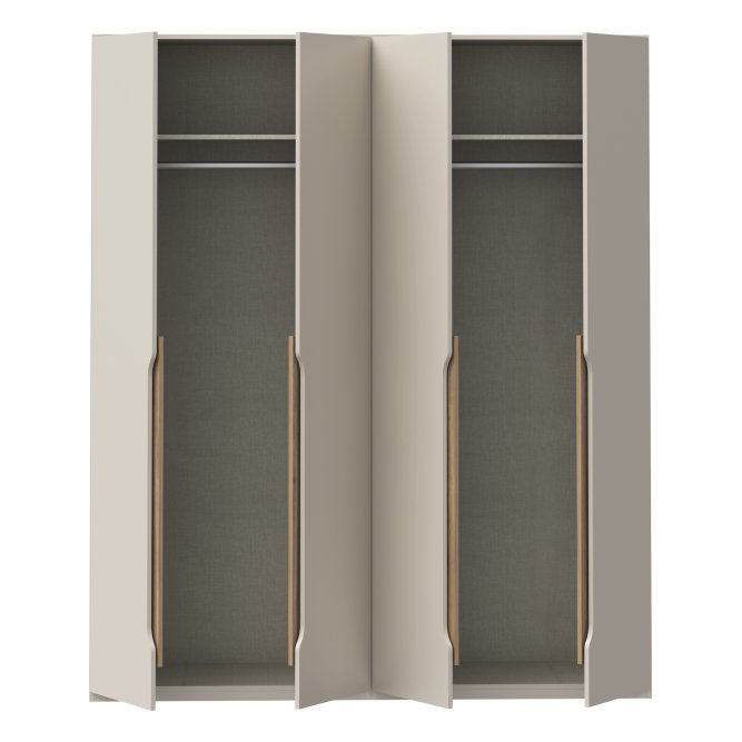 Szafa EDWAL sprawdzi się doskonale w niewielkich sypialniach, tworząc miejsce do przechowywania odzieży. Minimalistyczna konstrukcja w kolorze beżu przełamana jest efektownymi listwami w dekorze Dąb Mauvella. 4-drzwiowa szafa wyposażona jest w 2 drążki na wieszaki oraz 2 szerokie półki. Możesz uzupełnić szafę o komplet 3 półek, zwiększając funkcjonalność mebla i tworząc dodatkowe miejsce do przechowywania ubrań i dodatków. Połącz szafę z 170 pozostałymi elementami kolekcji EDWAL i ciesz się wymarzoną przestrzenią sypialni.