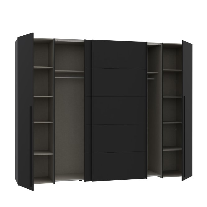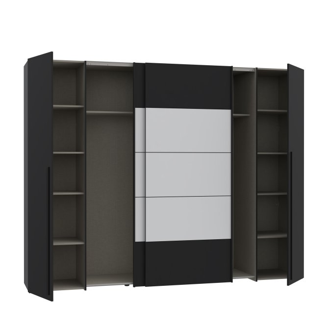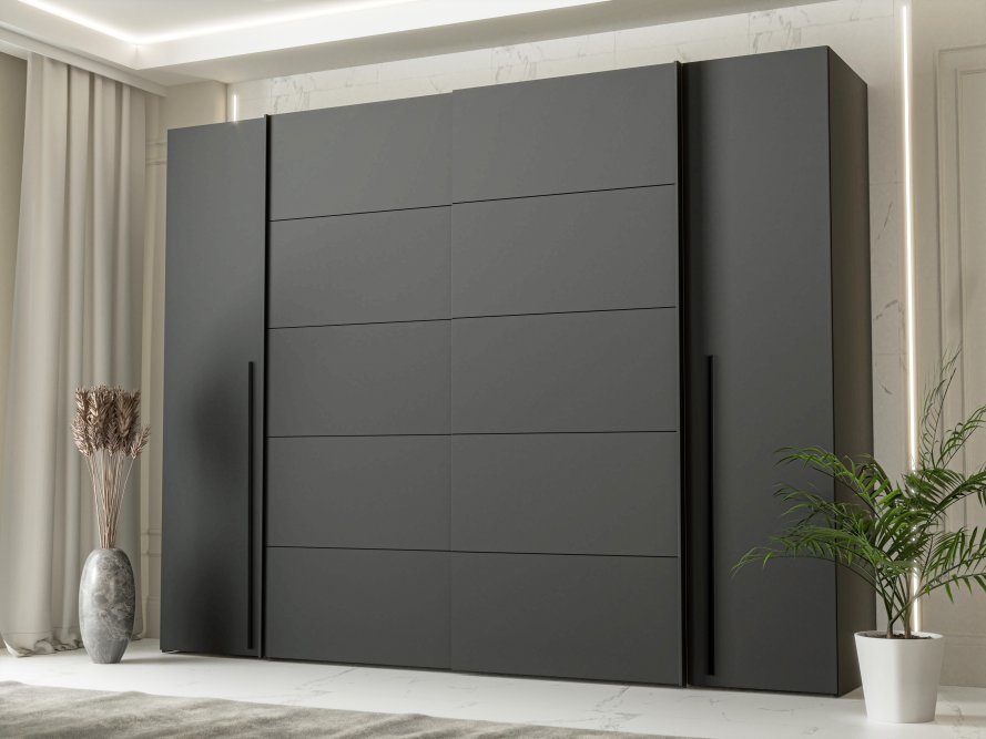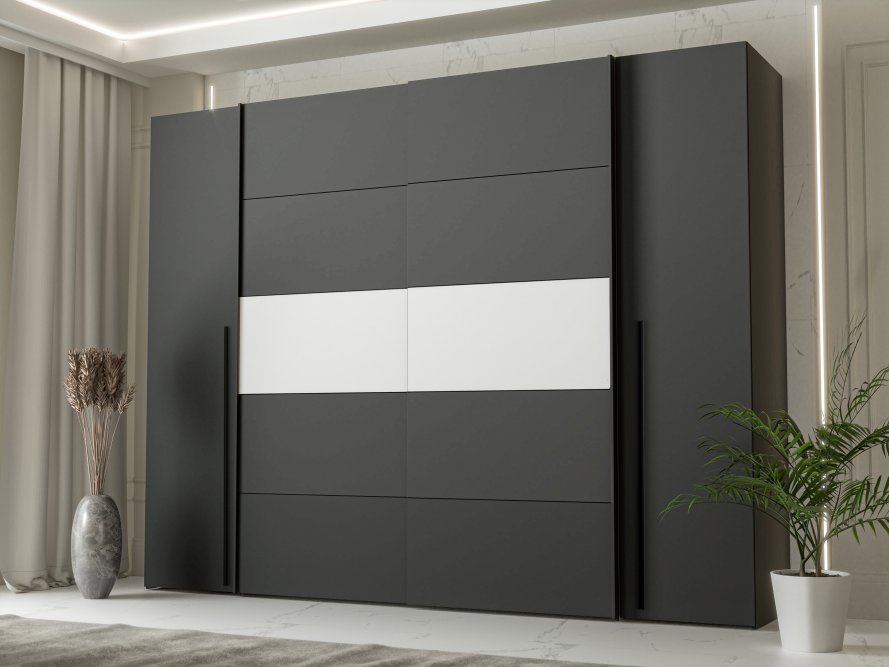 Szafa 270 cm NARAGO będzie funkcjonalnym i wyróżniającym się elementem wystroju Twojego mieszkania. Dzięki różnorodnym konfiguracjom frontów, szafa umożliwia wiele aranżacyjnych rozwiązań. Łącząc ją z innymi meblami z kolekcji, stworzysz harmonijną kompozycję swojego wnętrza.