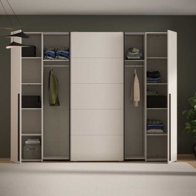 Szafa ubraniowa w stylu MODERN będzie pięknie prezentować się w takich pomieszczeniach jak Sypialnia. 4-drzwiowa Szafa ubraniowa zapewnia odpowiednio dużo miejsca do przechowywania.