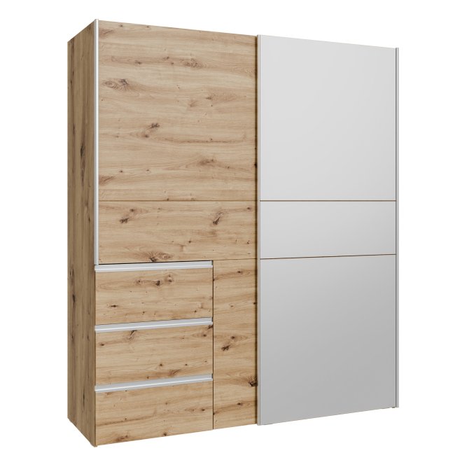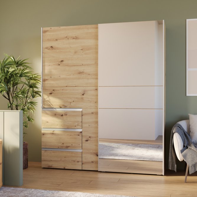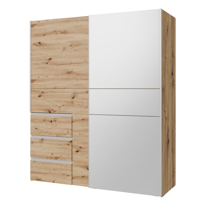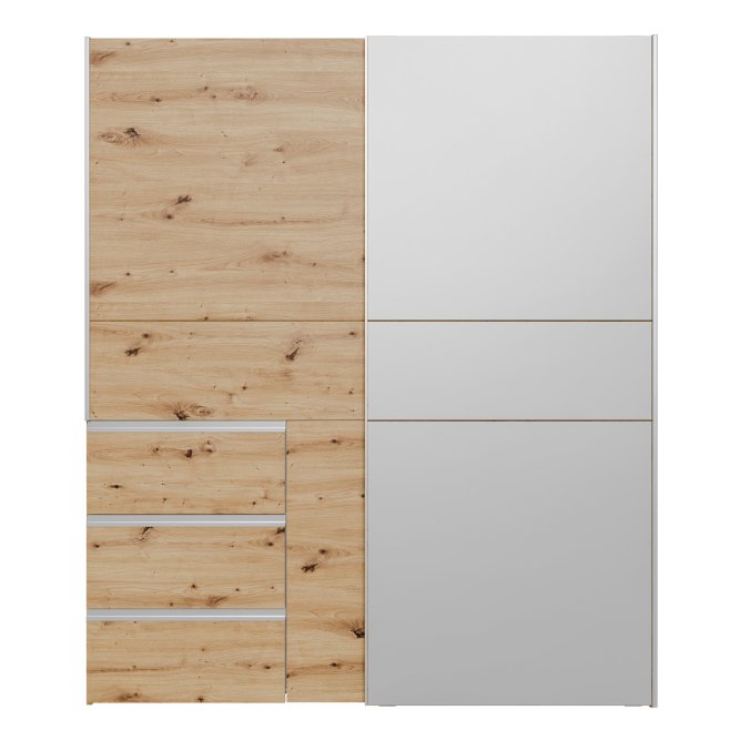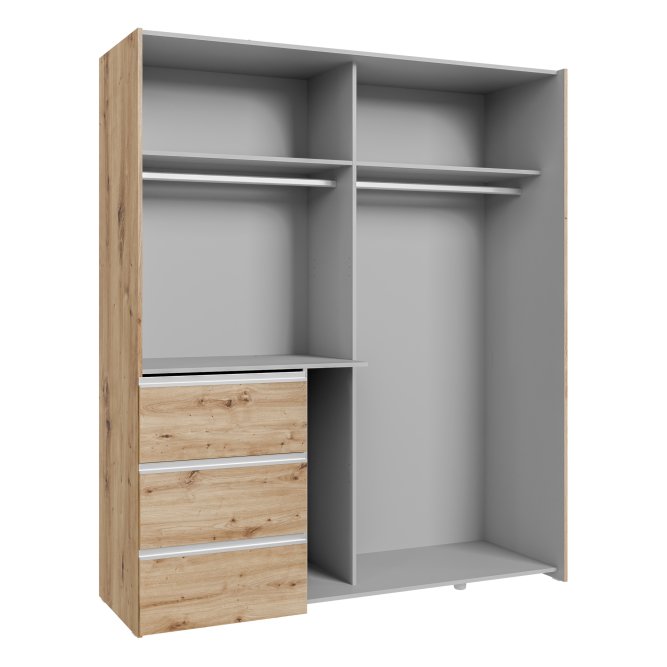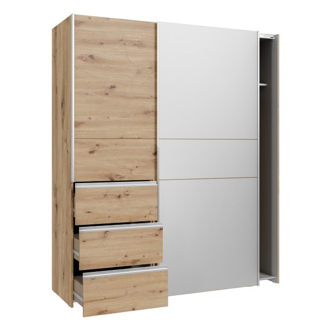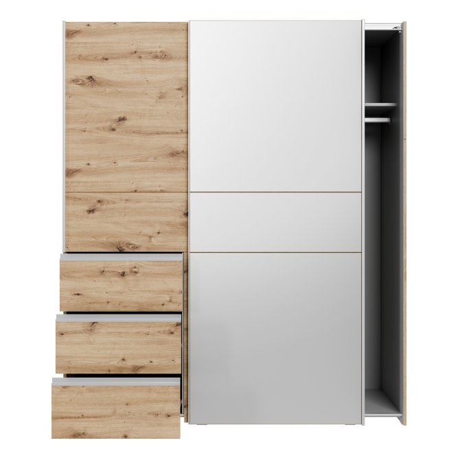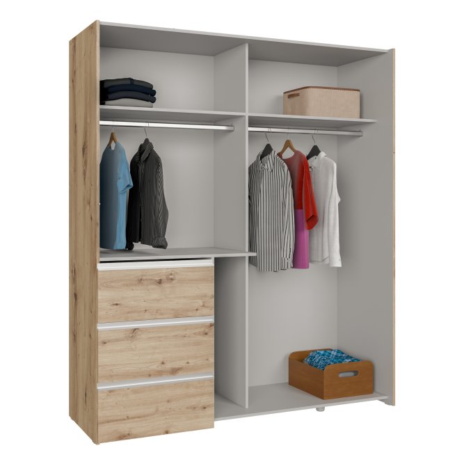 2-drzwiowa szafa doskonale sprawdzi się we wnętrzach urządzonych w stylu MODERN, w szczególności w takich pomieszczeniach, jak Sypialnia. Ma dobrze zorganizowaną przestrzeń: szuflady (3), drążek ubraniowy i półki (2). Dzięki takiemu układowi, w szafie możesz przechowywać różnorodne rzeczy - nie tylko odzież, lecz także sprzęt sportowy i hobbistyczny, dokumenty czy zdjęcia.