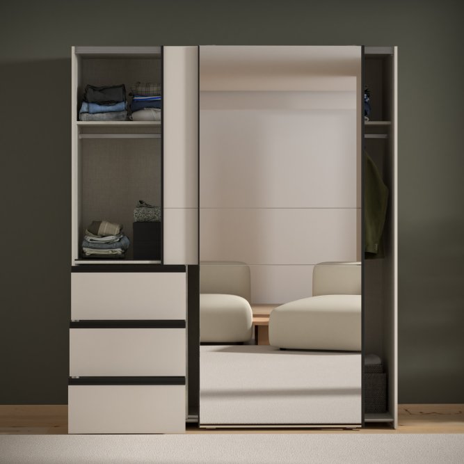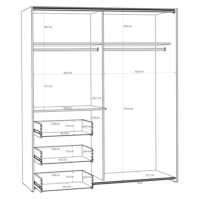 - Wnętrze wyposażone w: drążek ubraniowy i półki (3) zagwarantuje doskonałą organizację przestrzeni do przechowywania ubrań i innych przedmiotów