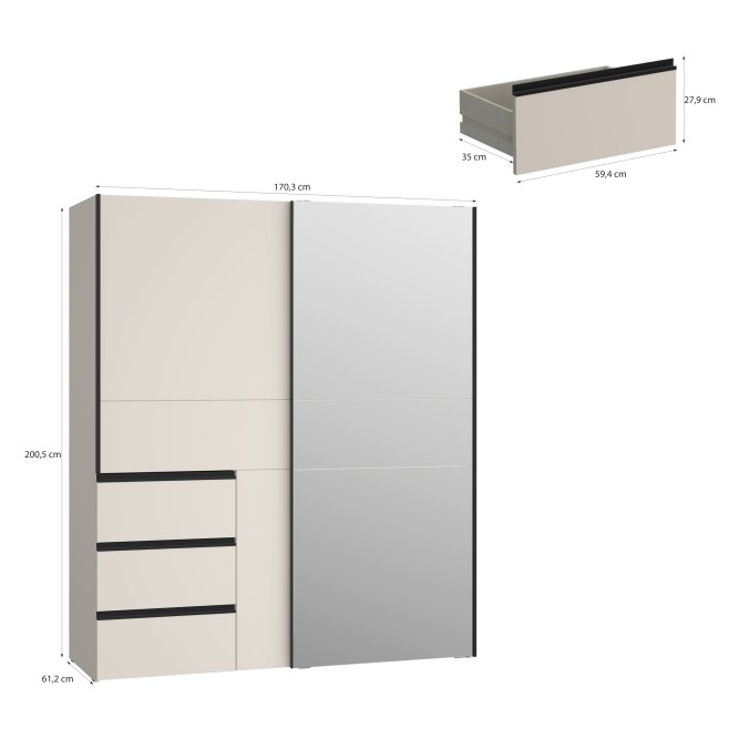 - Funkcjonalny mebel o wymiarach: szerokość 170.3 cm x wysokość 200.5 cm x głębokość 61.2 cm