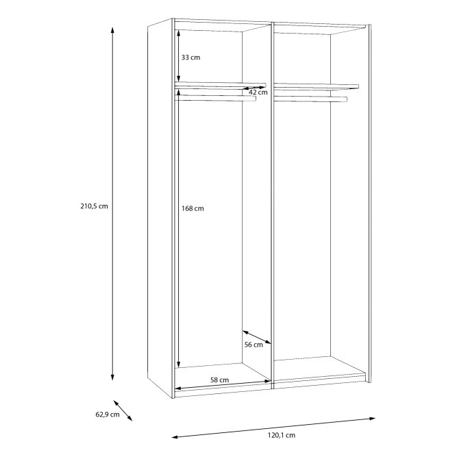 - Funkcjonalny mebel o wymiarach: szerokość 120.1 cm x wysokość 210.5 cm x głębokość 62.9 cm