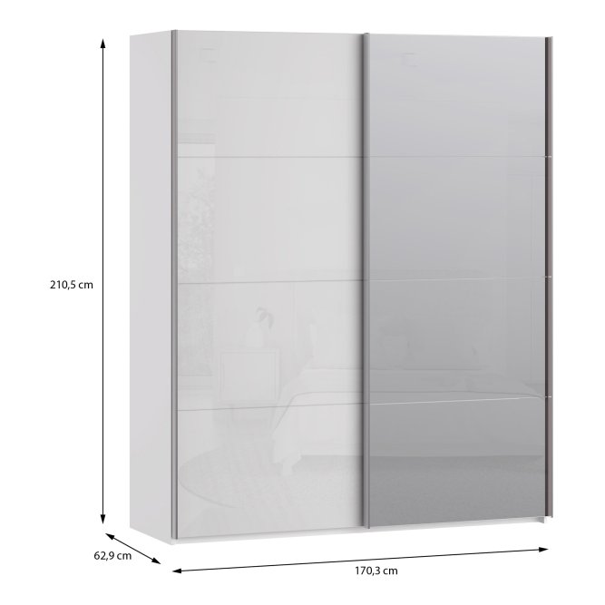 - Funkcjonalny mebel o wymiarach: szerokość 170.3 cm x wysokość 210.5 cm x głębokość 62.9 cm