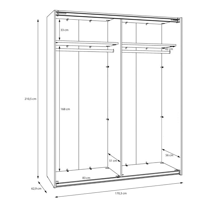 - Funkcjonalny mebel o wymiarach: szerokość 170.3 cm x wysokość 210.5 cm x głębokość 62.9 cm