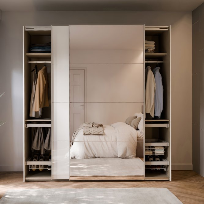 Szafa ubraniowa z kolekcji SOPHISTISPACE w stylu MODERN będzie pięknie prezentować się w takich pomieszczeniach jak Sypialnia. 2-drzwiowa Szafa ubraniowa zapewnia odpowiednio dużo miejsca do przechowywania.