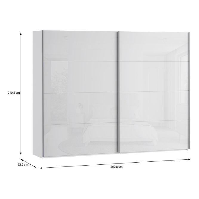 - Funkcjonalny mebel o wymiarach: szerokość 269.8 cm x wysokość 210.5 cm x głębokość 62.9 cm
