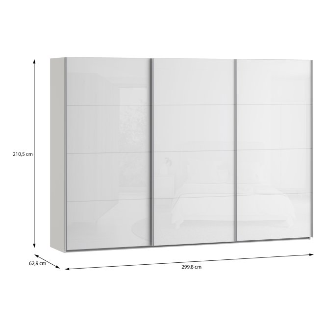 - Funkcjonalny mebel o wymiarach: szerokość 299.8 cm x wysokość 210.5 cm x głębokość 62.9 cm