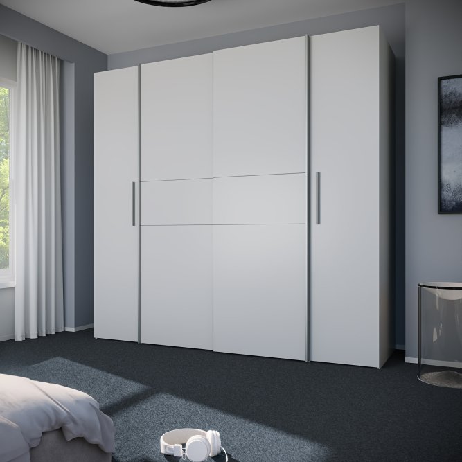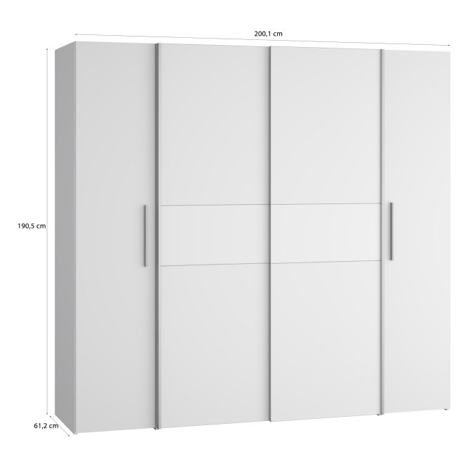 Szafa ubraniowa w stylu MODERN będzie pięknie prezentować się w takich pomieszczeniach jak Sypialnia. 4-drzwiowa Szafa ubraniowa zapewnia odpowiednio dużo miejsca do przechowywania.