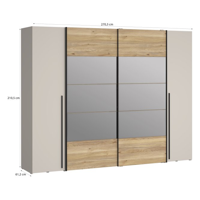 - Funkcjonalny mebel o wymiarach: szerokość 270.3 cm x wysokość 210.5 cm x głębokość 61.2 cm