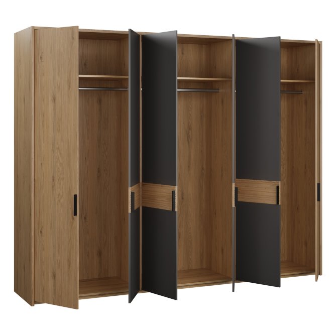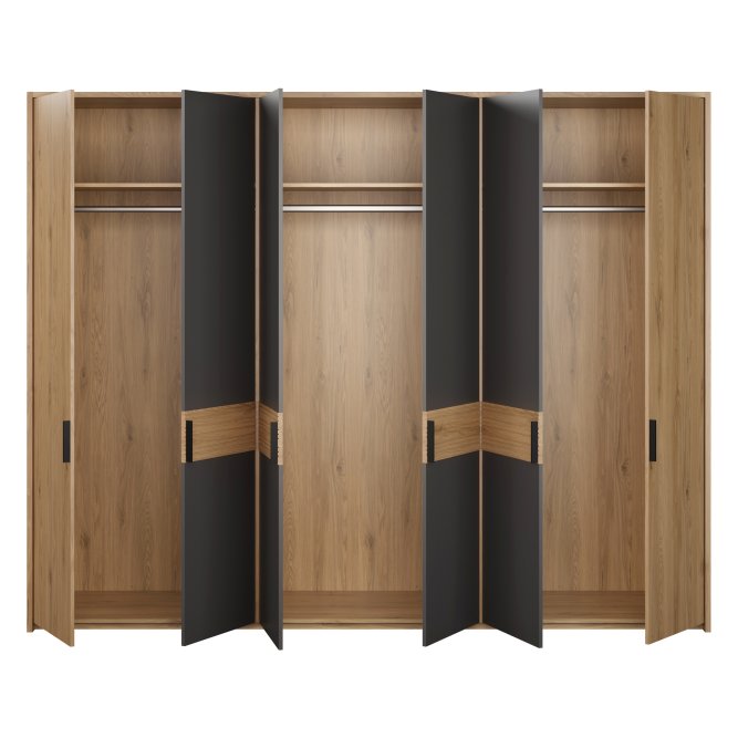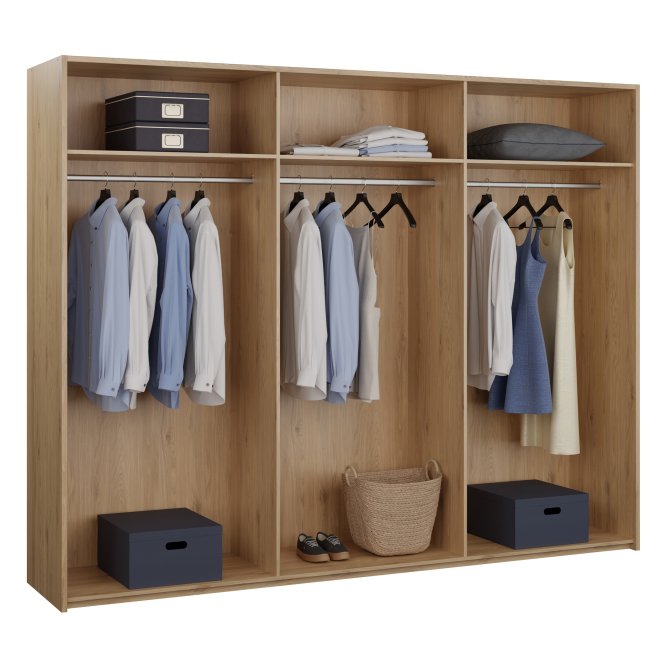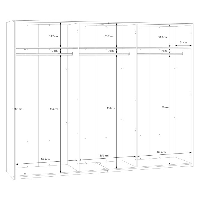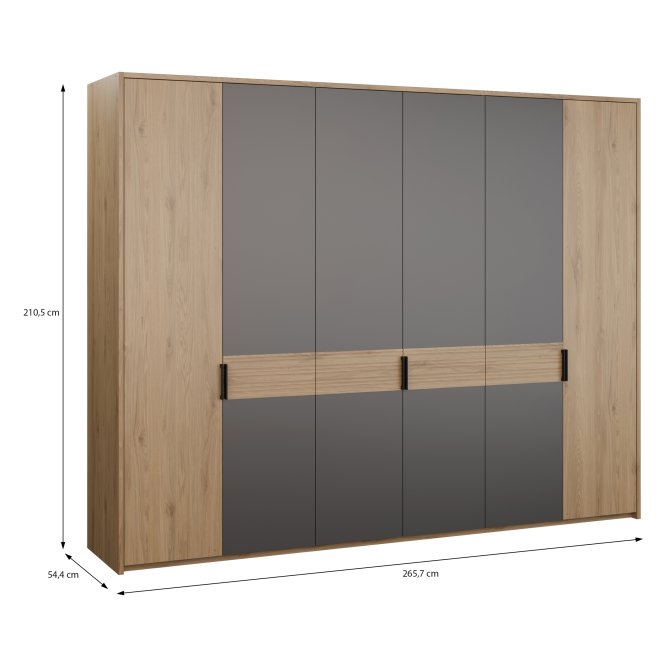 - Funkcjonalna szafa o wymiarach: szerokość 265,7 cm x wysokość 210,5 cm x głębokość 54,4 cm gwarantuje optymalną przestrzeń do przechowywania
