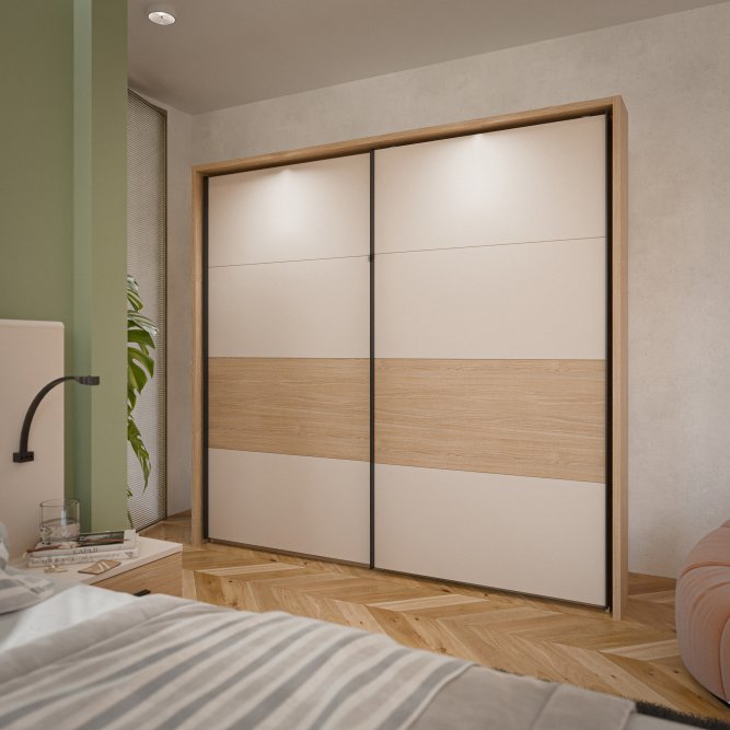 Szafa ubraniowa z kolekcji RICCIANO w stylu MODERN będzie pięknie prezentować się w takich pomieszczeniach jak Sypialnia. Wbudowane oświetlenie LED oraz 2-drzwiowa Szafa ubraniowa zapewnia odpowiednio dużo miejsca do przechowywania.