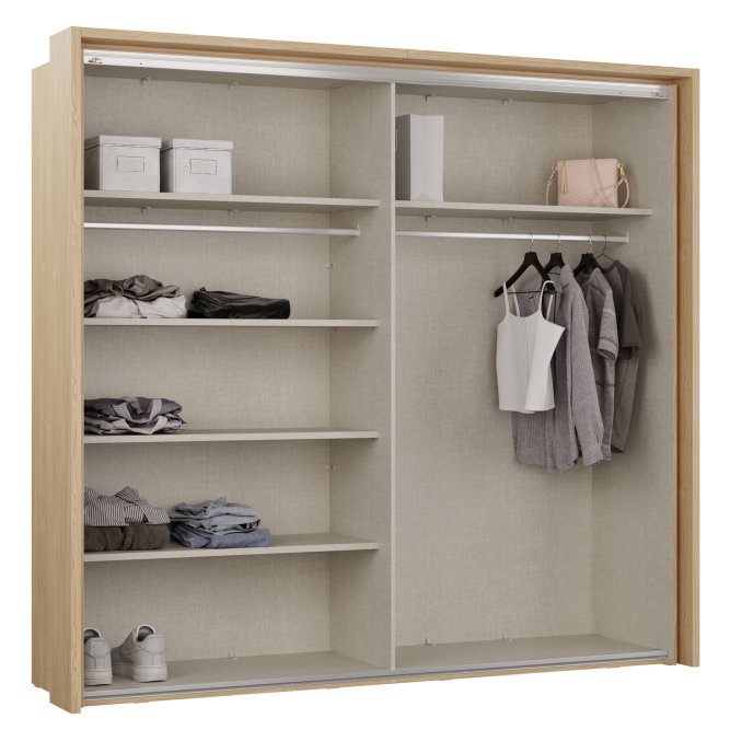- Wnętrze wyposażone w: drążek ubraniowy i półki (3) zagwarantuje doskonałą organizację przestrzeni do przechowywania ubrań i innych przedmiotów