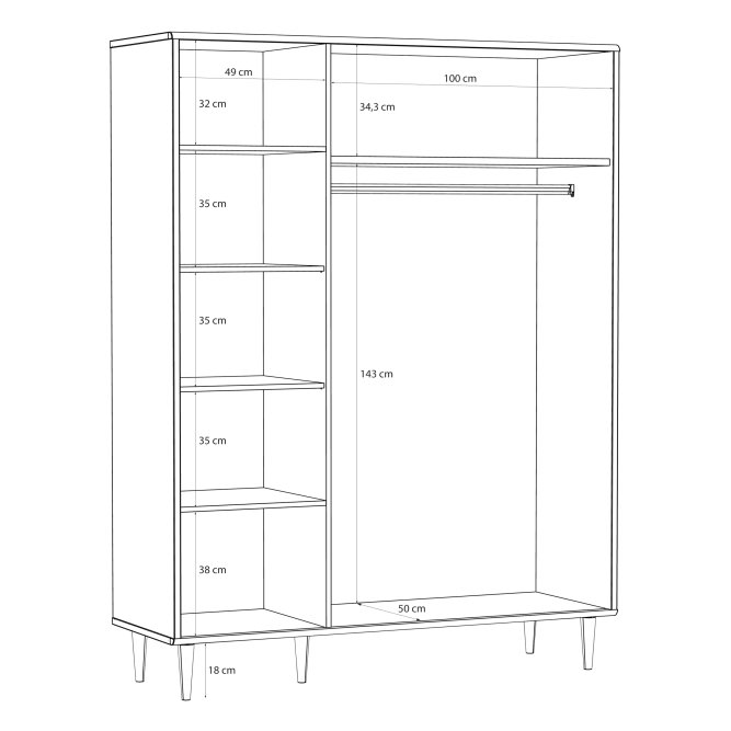 - Wnętrze wyposażone w: drążek ubraniowy i półki (5) zagwarantuje doskonałą organizację przestrzeni do przechowywania ubrań i innych przedmiotów