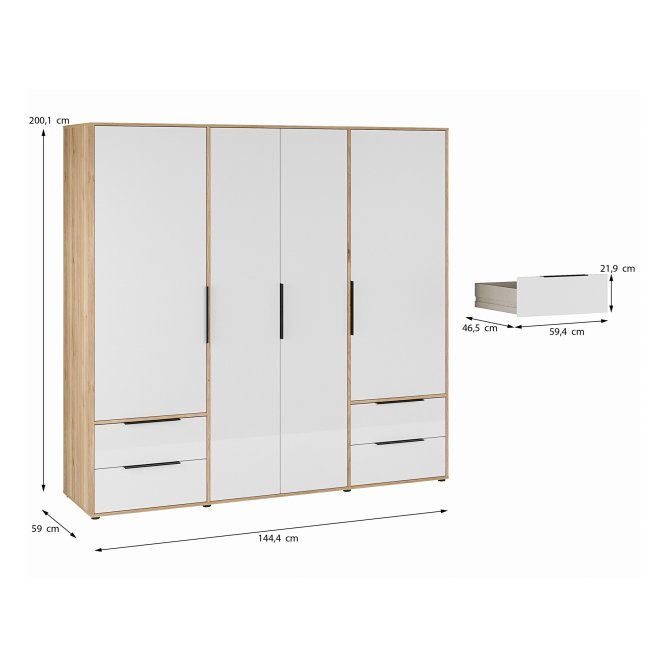 - Funkcjonalny mebel o wymiarach: szerokość 205.9 cm x wysokość 200.1 cm x głębokość 59 cm
