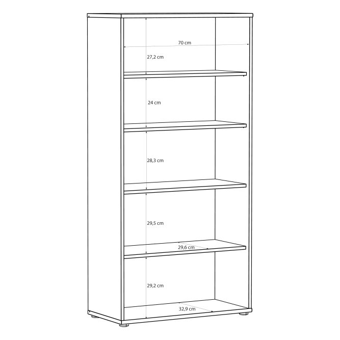 Wnętrze szafy wyposażone w pięć półek o maksymalnym obciążeniu do 15 kg
