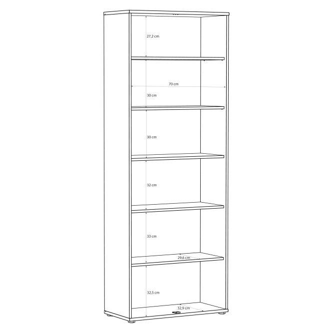 Wnętrze szafy wyposażone w sześć półek o maksymalnym obciążeniu do 15 kg