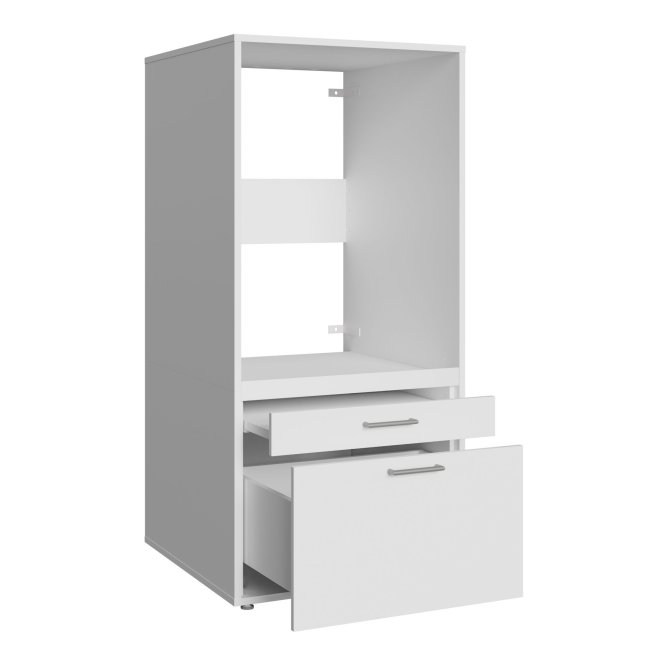 Szafka na pralkę z kolekcji WASHCAB to funkcjonalne i eleganckie rozwiązanie do strefy prania. W stylowej zabudowie znajdziesz przestronną wnękę o wymiarach szer. 63 × wys. 84 × gł. 66 cm — zaprojektowaną tak, żeby pomieścić większość urządzeń i zintegrować pralkę z resztą mebla. Kompaktowe wymiary szafki pozwalają wygodnie zagospodarować nawet mniejszą przestrzeń, a jednocześnie zachować schludny, uporządkowany wygląd. W dolnej części znajdują się dwie praktyczne szuflady — mniejsza o wysokości 10,1 cm i większa szuflada o pojemnej konstrukcji — co czyni ją idealnym miejscem na detergenty, akcesoria albo tekstylia. Komfort użytkowania zapewniają prowadnice Quadro z pełnym wysuwem i system cichego domyku. Subtelne uchwyty i nowoczesne wykończenie wpisują się w elegancki charakter kolekcji WASHCAB, tworząc estetyczne i funkcjonalne centrum prania w Twoim domu.